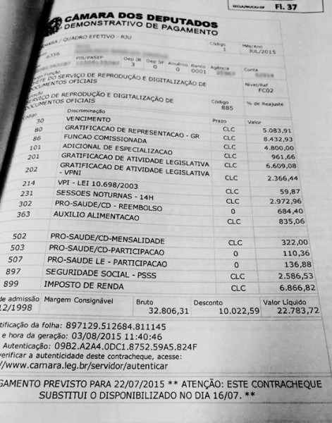 Contracheque de funcionário da Câmara dos Deputados viraliza nas redes sociais