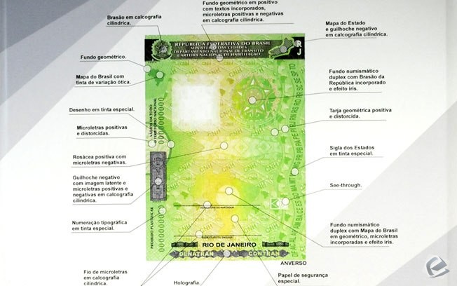 Os novos desenhos trazem também dispositivos de segurança para evitar falsificações. A ideia é que os agentes de trânsito consigam consultar os dados dos documentos usando apenas um aplicativo no celular que irá ler códigos de barra.