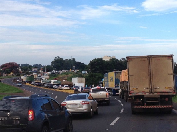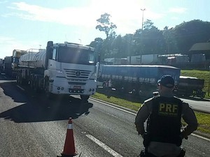 De acordo com a Polícia Rodoviária Federal (PRF), o tráfego está impedido nos dois sentidos nesta tarde, gerando um engarrafamento de 18 km, sendo nove de cada lado.
