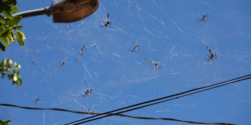 As aranhas tomaram conta da fiação da via, em alguns pontos fechando com teias de um lado a outro da rua.