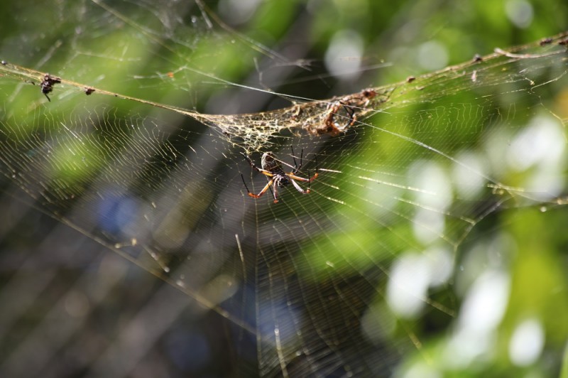 A seda é tão forte quanto um cabo de aço de mesma proporção. Às vezes até mesmo pequenos pássaros ficam grudados nas teias. Os fios são elaborados por uma estrutura no abdome da aranha, composta de glândulas fiandeiras.