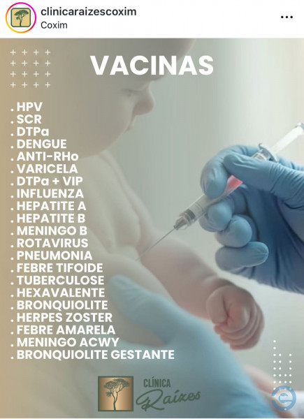 Pensando em proporcionar um melhor atendimento às pessoas, o Dr. João Pedro de Souza Argerin, implantou em sua clínica uma forma diferente para disponibilizar todas as vacinas mais importantes para a saúde da população de Coxim e região. Dentre as vacinas ofertadas estão a de Hepatites, HPV, Meningo, Bronquiolites, pneumonia, febre amarela, dengue e muitas outras.