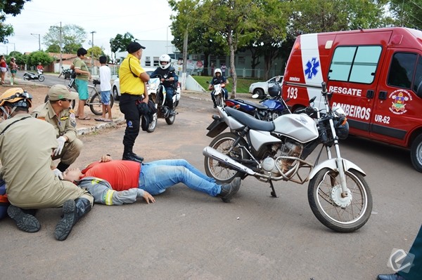 Motociclista é arremessado por 20 metros após colisão frontal no Piracema