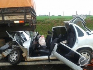 Colisão traseira em caminhão mata casal e deixa duas pessoas feridas