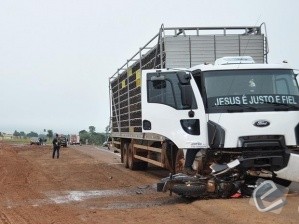 Motociclista morre ao tentar ultrapassagem e bater em caminhão