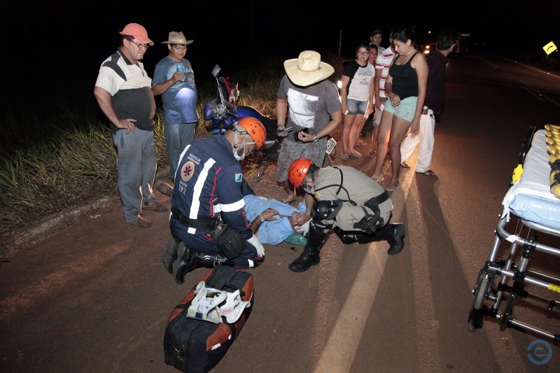 Chacareiro fica ferido em queda de moto na BR-359, em Coxim