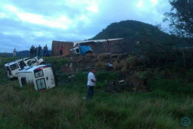 Acidente entre carreta, ônibus e ambulâncias deixa 15 mortos
