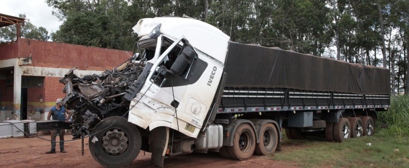 O motorista conduzia uma Iveco Stralis, com placas do Paraná, que colidiu na traseira de outra carreta. Com isso, a frente da carreta, que estava carregada com mais de 30 mil quilos de macarrão, ficou totalmente destruída.