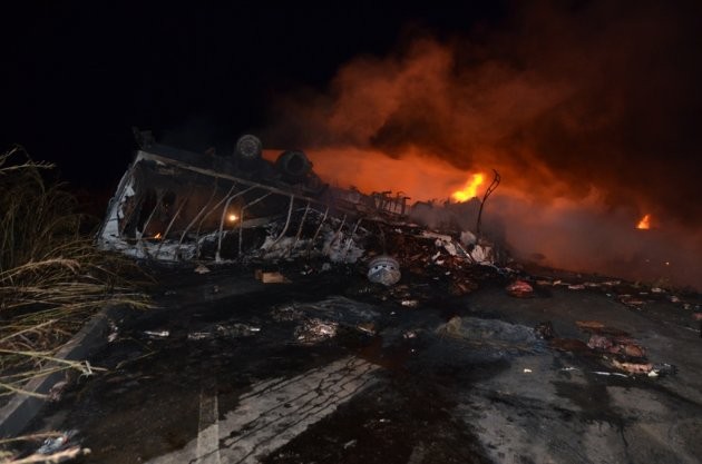 Testemunhas afirmaram que o motorista da carreta invadiu a pista contrária e colidiu frontalmente com o caminhão. Os dois veículos acabaram pegaram fogo e o Corpo de Bombeiros levou pelo menos quatro horas para combater as chamas.