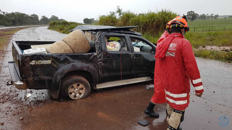 Pai e filho ficam feridos em capotamento na BR-163, em Rio Verde