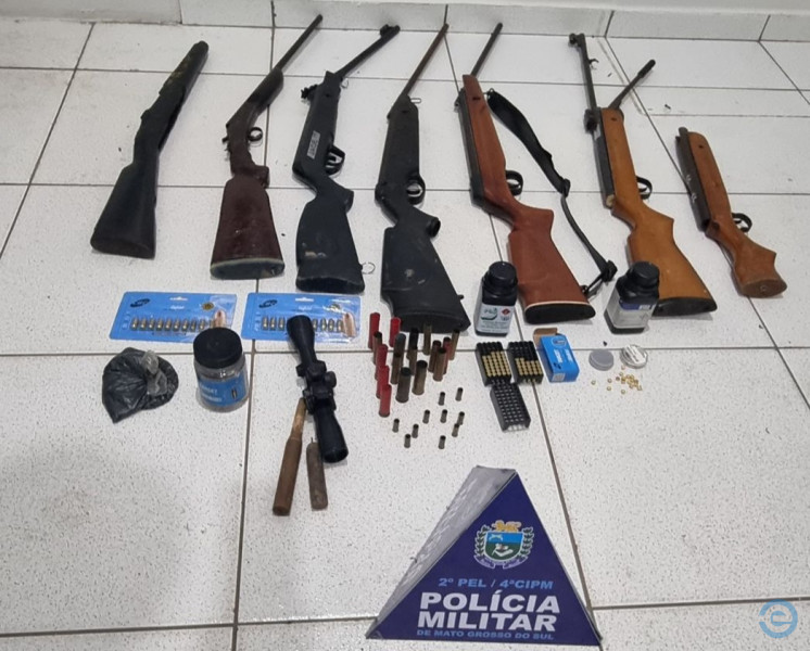 Polícia Militar prende dois homens e apreende quatro armas de fogo e diversas munições