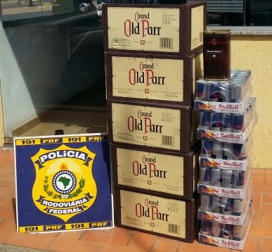 PRF apreende whiskys e energéticos oriundos do Paraguai na BR-163, em Coxim