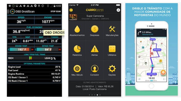 O Carrorama permite que o usuário acompanhe a evolução do consumo de combustível e dos gastos com manutenções por meio de gráficos e planilhas, além de mandar avisos sobre vencimento de seguro, revisões ou substituições de peças. Para iOS e Android.
