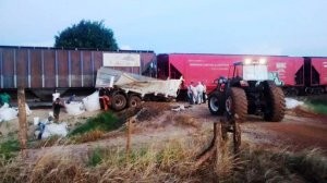 Caminhão para em linha férrea e é atingido por trem na MS-306