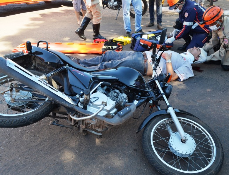 Jovem que caiu de moto no centro de Coxim continua internado na Capital e passa bem