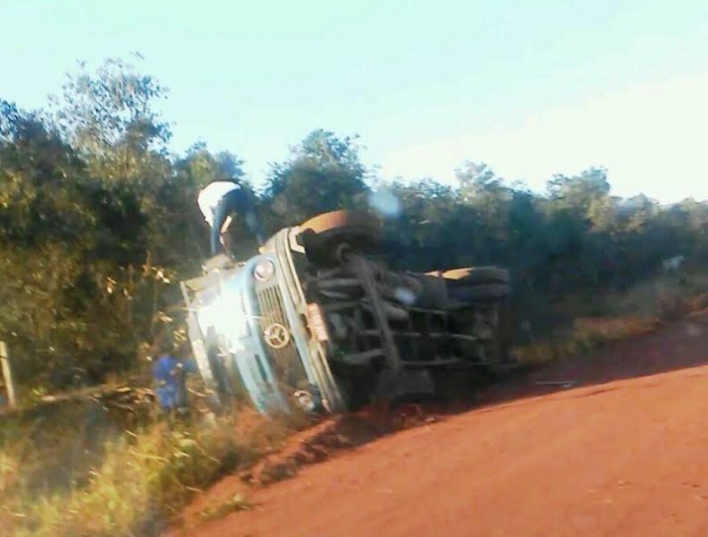 Caminhão carregado com gado tomba na MS-080 e animais ficam soltos na rodovia