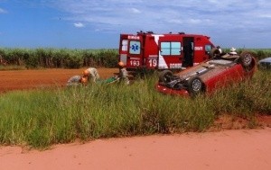 Mulher perde controle e capota veículo em trecho não pavimentado
