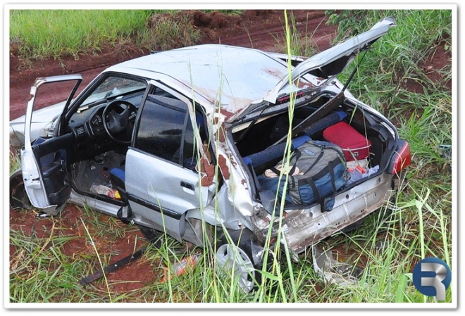 Motorista fica ferido no capotamento de Corsa em Ivinhema