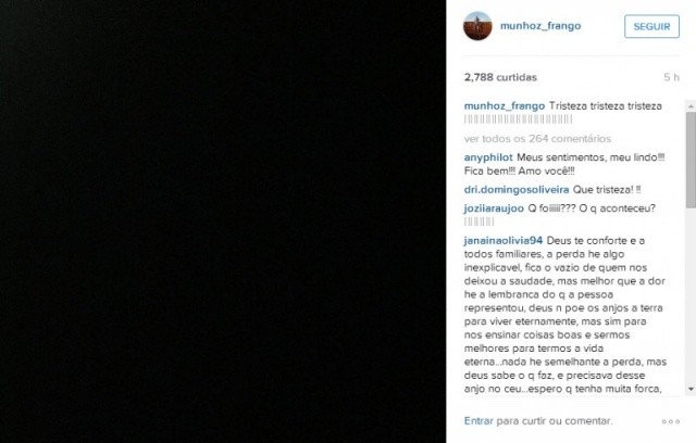 Munhoz também homenageou o amigo em sua conta no instagram. O artista postou um quadro preto e na legenda escreveu: "Tristeza tristeza tristeza".