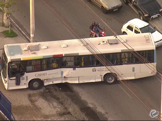 Um ônibus articulado do BRT se envolveu em um acidente, por volta das 5h30 desta segunda-feira (19), próximo à estação Merck do BRT na Taquara, Zona Oeste do Rio. Imagens feitas pelo Globocop mostram que o ônibus articulado colidiu com um outro ônibus que ficou atravessado na pista da Estrada dos Bandeirantes.