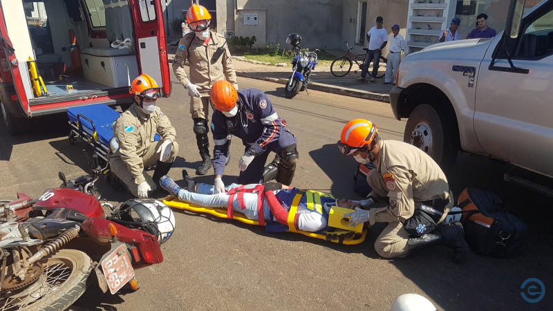 ImprimirO acidente aconteceu na manhã desta segunda-feira (04), na avenida Virgínia Ferreira, em Coxim. O mototaxista Michael Vitor Vieira, de 23 anos, sofreu escoriações e reclamava de dores no joelho direito.