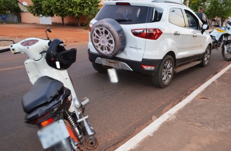 O segurança Gerson Lopes de Brito, de 31 anos, ficou ferido ao se envolver numa colisão entre carro e moto, ocorrida por volta das 17h25 desta terça-feira (18), na rua Presidente Costa e Silva, no bairro Morada Altos do São Pedro em Coxim.