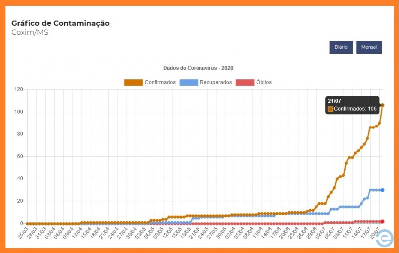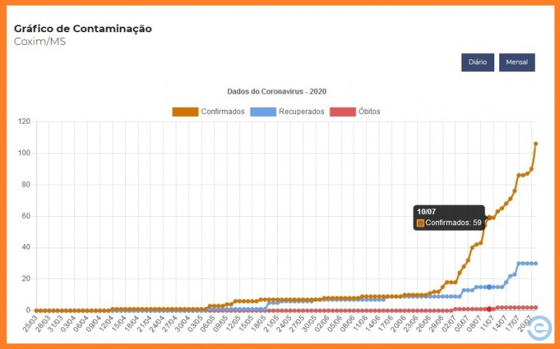 O lockdown de final de semana, que começa às 22 horas de sexta-feira e vai até as 5 horas de segunda-feira, foi decretado em 10 de julho. De lá pra cá os casos de Coronavírus aumentaram de forma acelerada em Coxim. Dia 10 eram 59 infectados, atualmente são 106, ou seja, aumento de quase 80% nos casos confirmados.