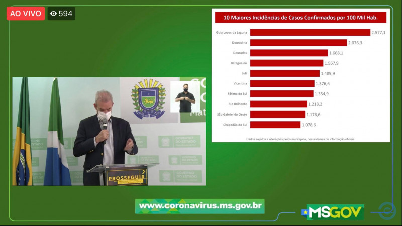 De acordo com o boletim do Estado, São Gabriel do Oeste continua nos rankings de cidades com maior número de confirmados e de incidência da doença. No primeiro citado o município da região norte aparece em sétimo lugar e no segundo em nono, com incidência de 1.176,6% por 100 mil habitantes.
