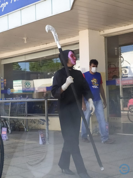 A ideia de se vestir de morte partiu da professora e atriz Agripina Souza para auxiliar no trabalho da Vigilância Sanitária. Os agentes orientam e ela da o tom de humor, pois algumas pessoas hesitam em manter o distanciamento e chegam ao ponto de serem grosseiros com a equipe da secretaria de Saúde.