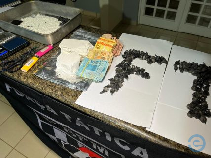 Todos os presentes receberam voz de prisão. No momento do flagrante Rony estava embalando entorpecente e portava R$ 5.889,00 sem comprovação de origem, ainda de acordo com a polícia.
