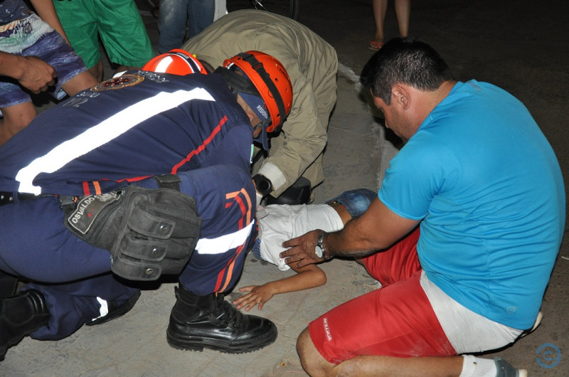 Criança solta da mão de padrasto e é atropelada em avenida de Coxim