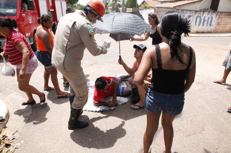 O montador ainda tentou desviar, mas não conseguiu evitar a colisão, sendo arremessado ao solo. Ele contou com ajuda de terceiros, que o protegeram do sol, até a chegada do Corpo de Bombeiros.