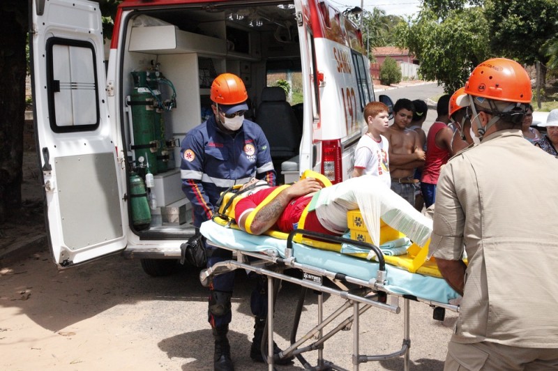 Ele foi socorrido pelo Corpo de Bombeiros com fratura na perna direita, cortes profundos na mesma perna e no braço esquerdo, além de escoriações em diversas regiões.