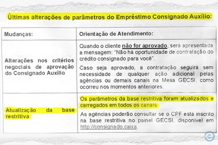 Em 14 de novembro, a instituição mandou um comunicado interno para agências e correspondentes bancários informando que atualizou a lista de pessoas impedidas de contratar o consignado do Auxílio — o documento foi confirmado pelo UOL com fontes de três estados. A nova lista restringiu drasticamente o fornecimento de novos créditos.