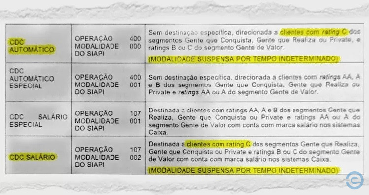 Além das mudanças no consignado do Auxílio, pelo menos três linhas de crédito para clientes com maior propensão à inadimplência ("rating C" na classificação da Caixa) foram interrompidas após a derrota de Bolsonaro, sem explicação. Em 9 de novembro, as agências receberam comunicados informando que a "modalidade [foi] suspensa por tempo indeterminado".