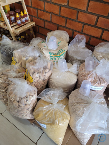 Na loja você também encontra o famoso guaraná Jesus, queijos, doces, dentre outros produtos típicos vendidos a granel: amendoim, farinha, feijão e variedade de temperos.