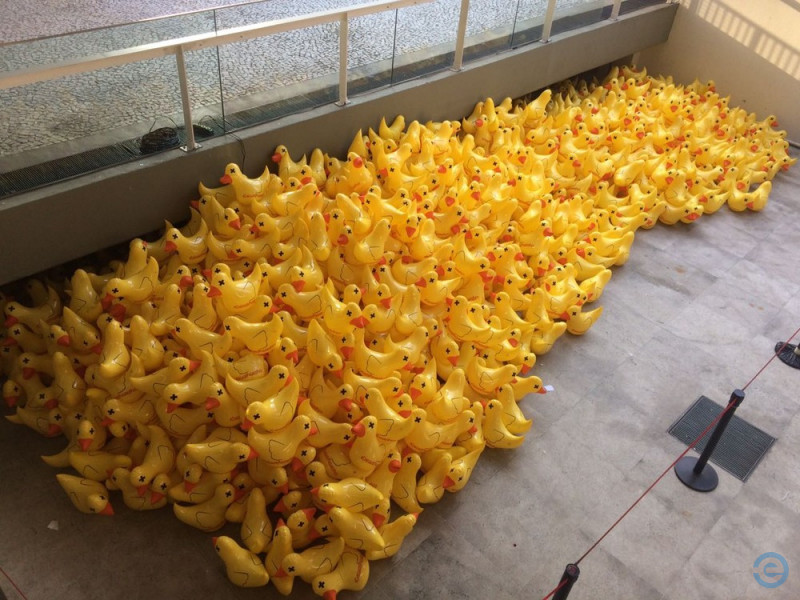 O gesto, segundo a entidade, é um protesto contra o aumento dos impostos. Além do pato de cinco metros, há outro pato, um pouco menor, em uma sacada do prédio. Às 10h, patinhos serão entregues para os pedestres.