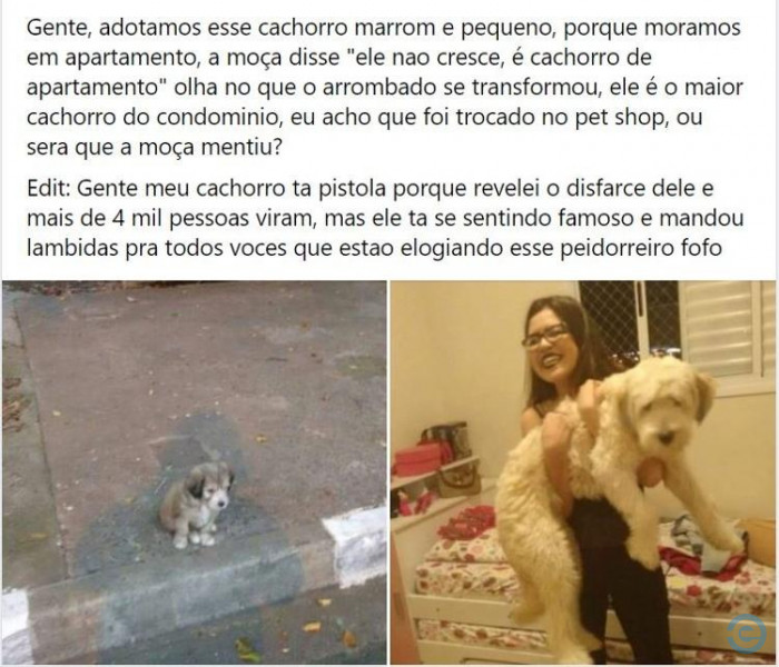 E para não dizer que só tem gente surpresa com os pets que cresceram, tem aqueles que estão esperando seu "doberman" crescer até hoje: