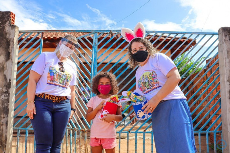 Um dos exemplos ocorreu na Páscoa. Em vez de a Prefeitura fazer um grande evento para distribuir os ovos de chocolate, a Assistência Social se dividiu em equipes e entregou nas residências dos beneficiários. Claro que, para entrar no clima, todos foram caracterizados entregar as lembrancinhas.